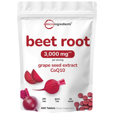 Micro Ingredients Beet Root 3,000mg with Grape Seed Extract & CoQ10, 400 Tablets