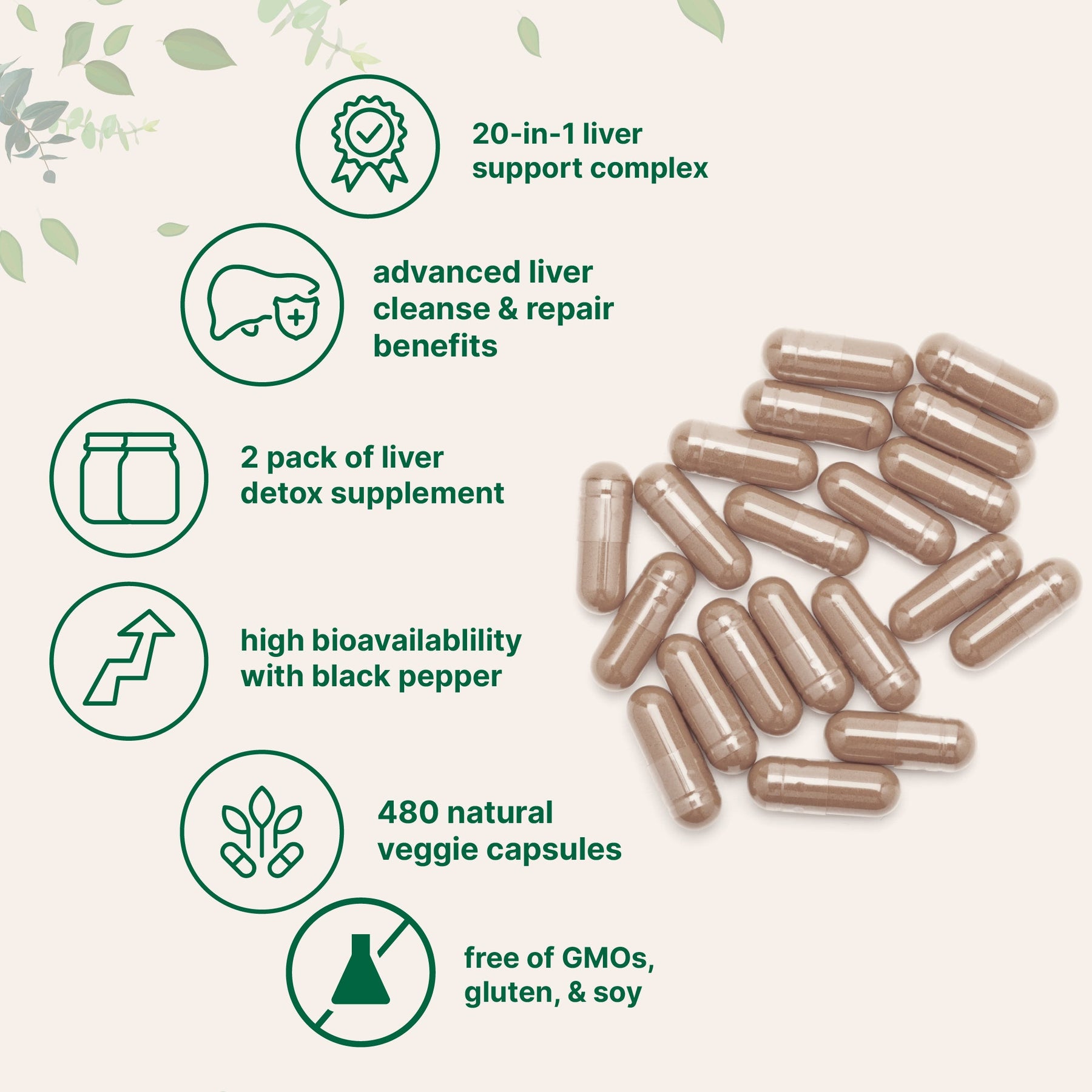 • 20-in-1 Key Liver Nutrients: This highly bioavailable blend includes 1,000mg milk thistle, 800mg dandelion, 500mg artichoke, plus choline, zinc picolinate, selenium, beet root, burdock, chicory, chanca piedra, berberine, astragalus, black pepper extract, and more.