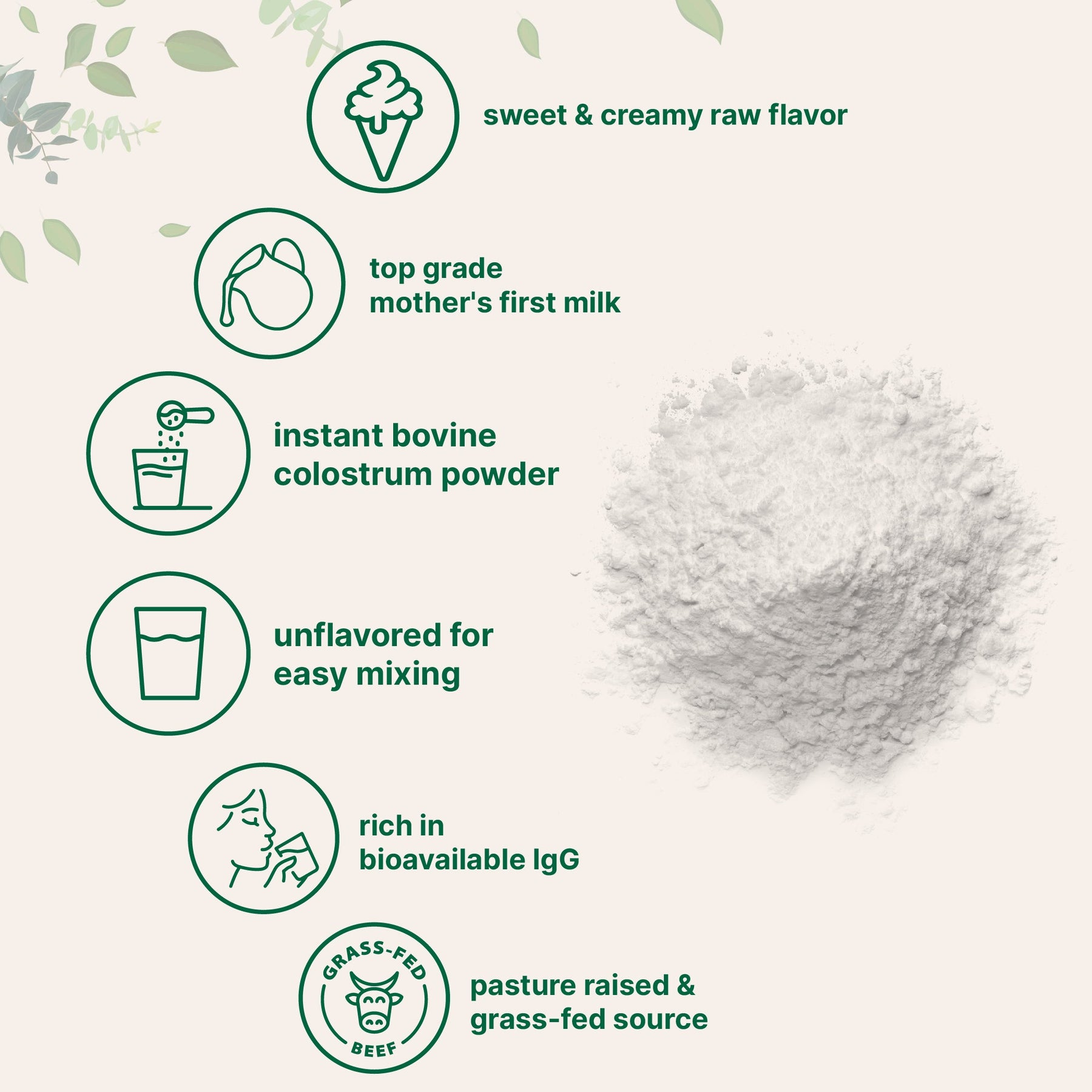 - Each pouch includes easily mixable, unflavored colostrum powder. Simply add 1 scoop to 1 cup of warm water for a sweet and creamy raw flavor.