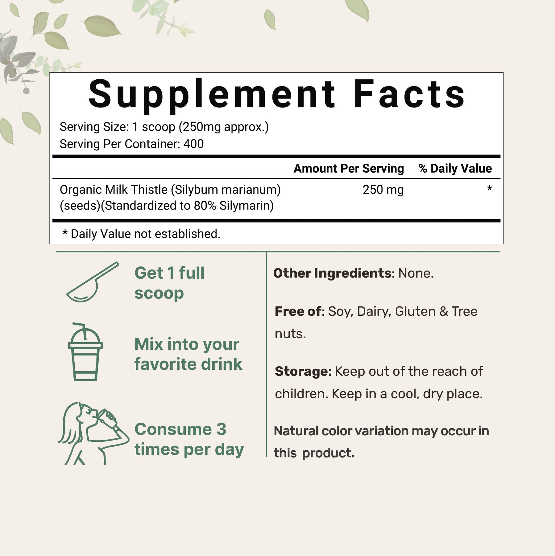 - Micro Ingredients Organic Milk Thistle Powder 3.53OZ