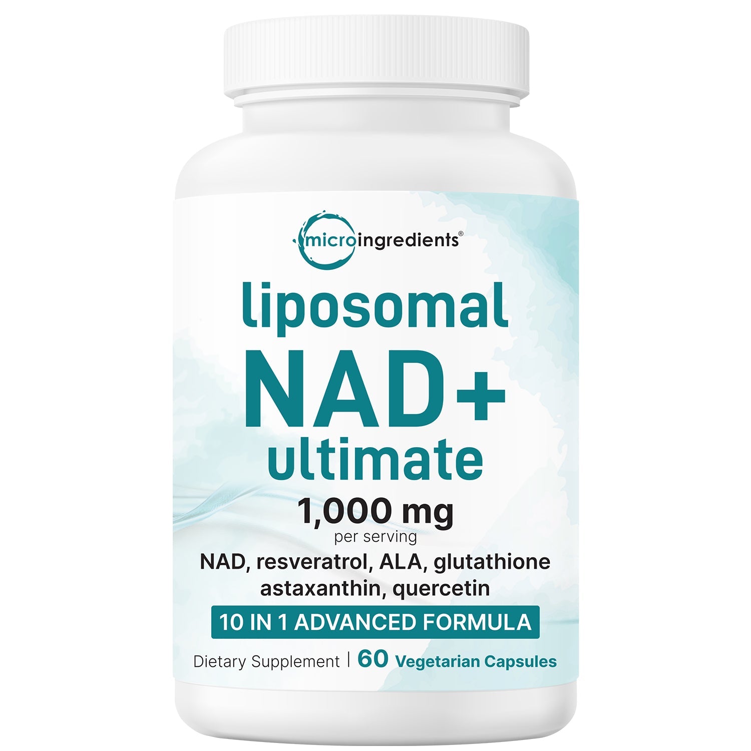 Micro Ingredients offers a 10-in-1 Liposomal NAD+ Ultimate formula featuring a broad-spectrum antioxidant complex for advanced cellular support. This formula uses liposomal technology to help shield NAD+ from digestive breakdown and promote superior nutrient absorption.