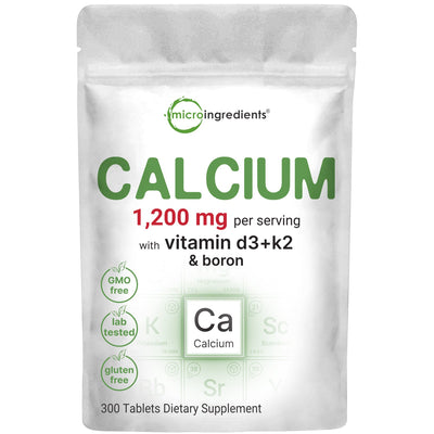Micro Ingredients Calcium 1,200 mg with Vitamin D3 Plus K2 (MK-7) & Boron, 300 Tablets